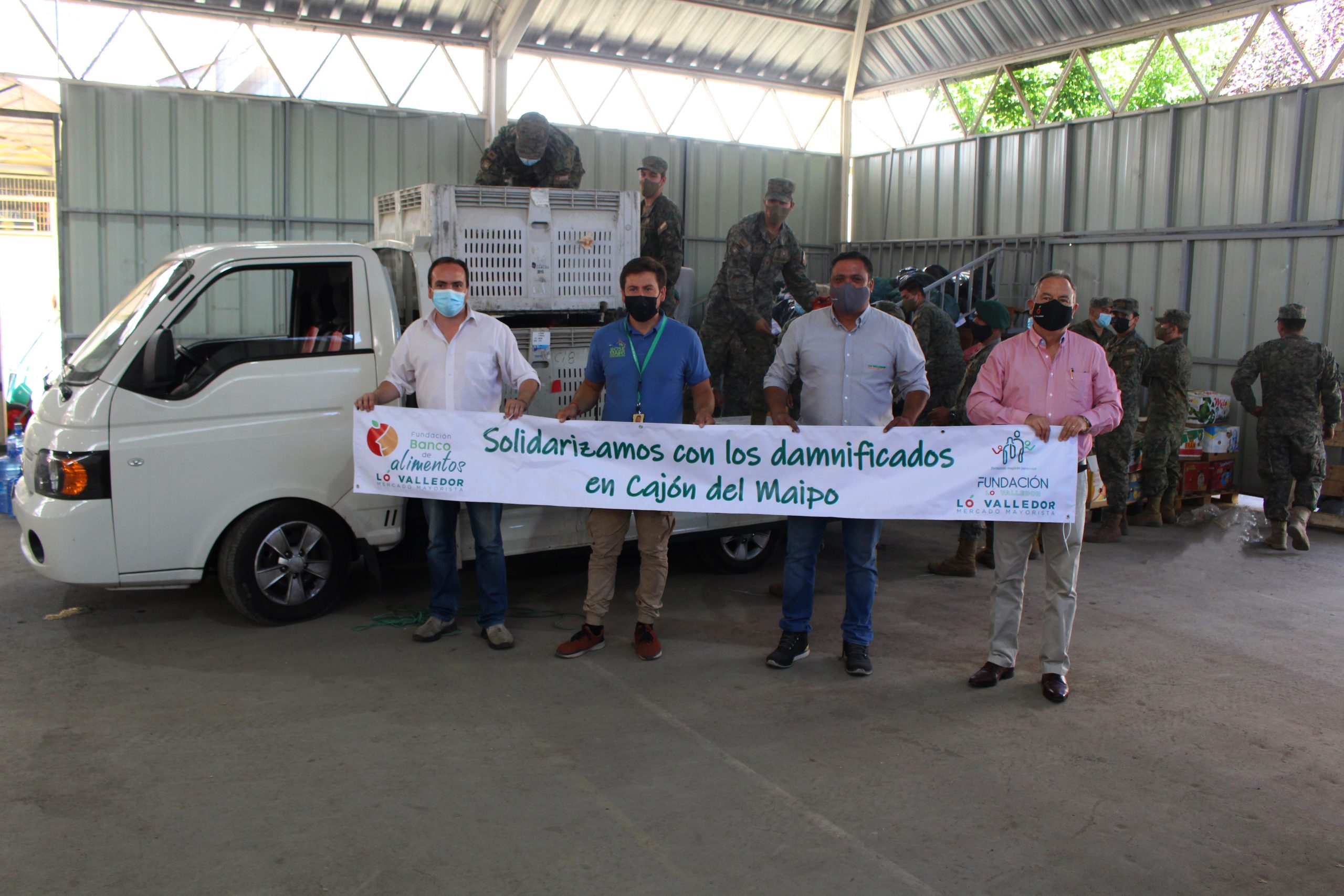 Un equipo profesional del mercado y voluntarios de la Fundación Banco de Alimentos Lo Valledor viajaron hasta la zona más afectada del Cajón del Maipo el pasado viernes 5 de febrero, para entregar más de 2 toneladas de mercadería, entre papas, cebollas, zapallos, betarragas, y aliviar a las 220 familias damnificadas que se encuentran en albergues.